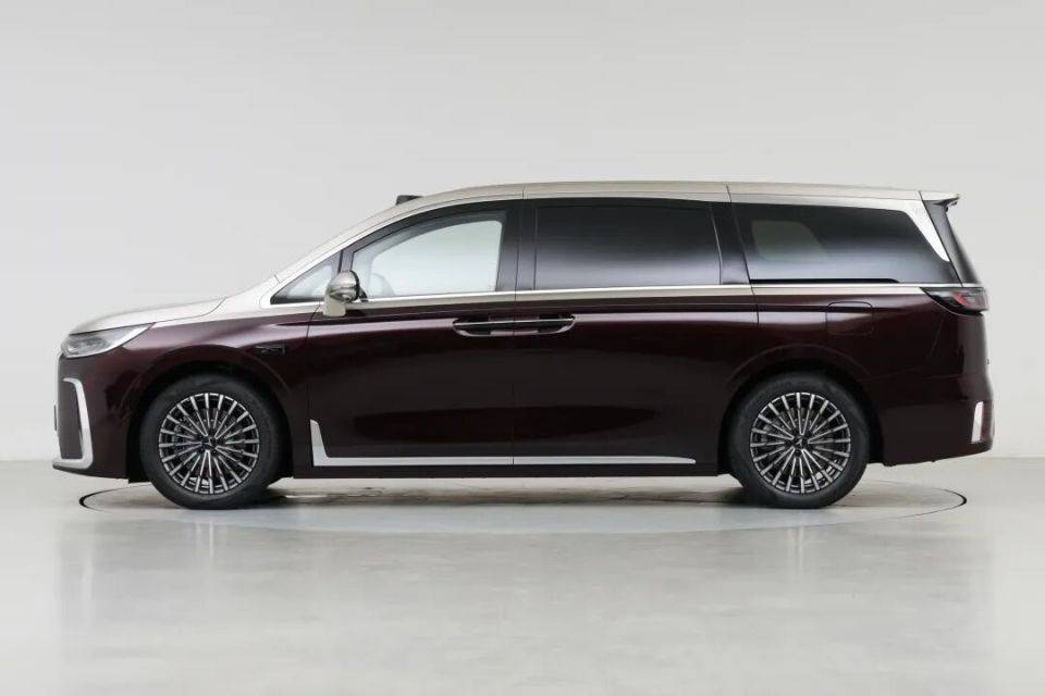 来到车身侧面,平直的线条,较为修长的车身设计,密辐式轮圈,车身多处镀铬装饰件,此次,新车也带来全新的配色,金銮红。车身尺寸方面,新车的长宽高分别为5315/1980/1820mm,轴距为3200mm,定位为中大型mpv。