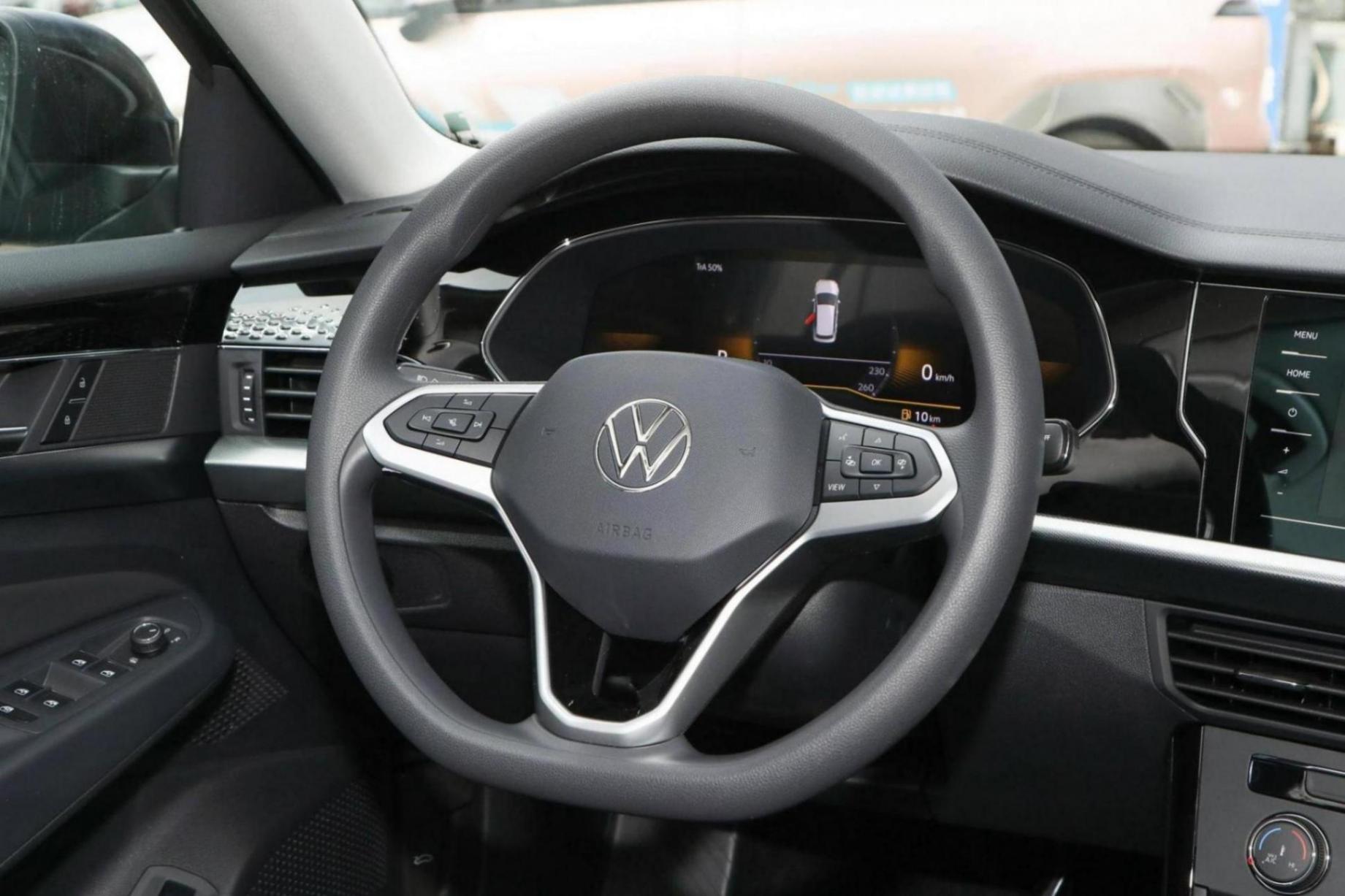 内饰方面,可以看出大众帕萨特的车内造型上,设计上变得活泼、时尚了许多。中控台下方的黑色饰板上使用了点状的设计,配合上环抱车内的钢琴烤漆以及银色镀铬饰条,看起来沉稳,又不会觉得太无聊。方向盘的款式我们很熟悉了,下面还加入了木纹装饰,不过盘身偏细,握感不太饱满。